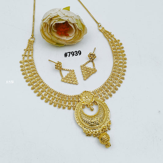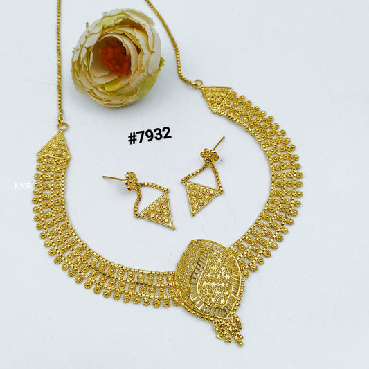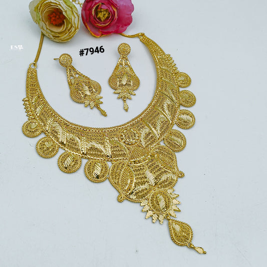 Discover the elegance of our Gold Plated Arabic Design Necklaces, a stunning addition to any jewelry collection. Crafted with traditional Arabic artistry, these necklaces embody the rich heritage of Arabic bridal jewelry, making them perfect for special occasions. Whether you're looking to elevate your everyday style or complete a bridal ensemble, our exquisite designs offer timeless beauty and sophistication. Embrace the allure of traditional craftsmanship with a modern twist in every piece.
