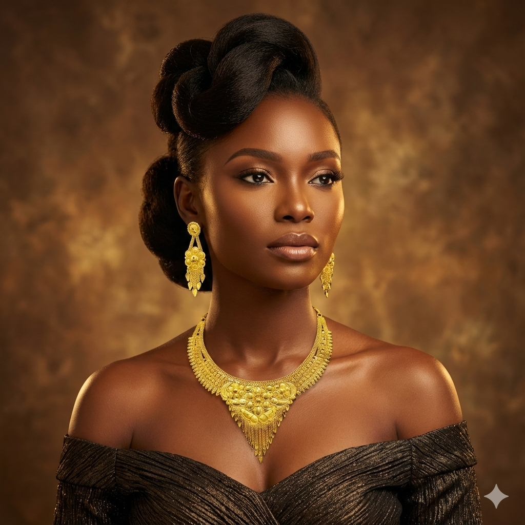 Stunning Gold Plated bridal necklace set featuring intricate floral motifs and a cascading triangular drop, paired with matching elegant earrings. Expertly handcrafted by Indian artisans, this set exudes royal charm and timeless sophistication. Perfect for weddings, festive occasions, and luxury gifting, it beautifully blends traditional artistry with modern elegance.