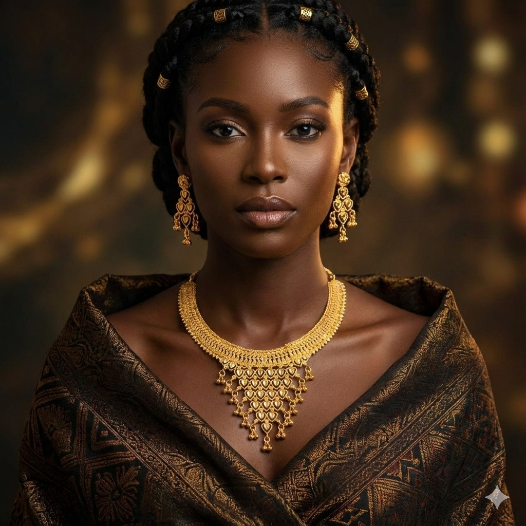 This elegant gold choker-style necklace features intricate detailing and cascading heart-shaped motifs with delicate bead danglers for a rich traditional look. The matching earrings mirror the same graceful design with floral studs and heart drops. Perfect for weddings, festive occasions, and premium ethnic wear.