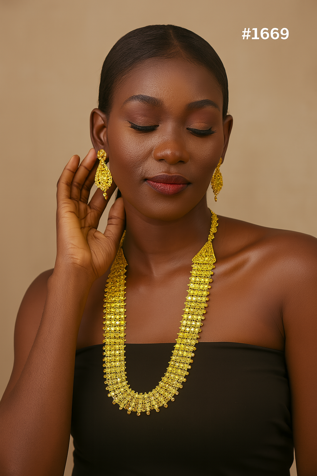 PMJ Sublime Gold Plated Beautiful Long Necklace Set Fashion Jewelry Sale MODEL : 1669