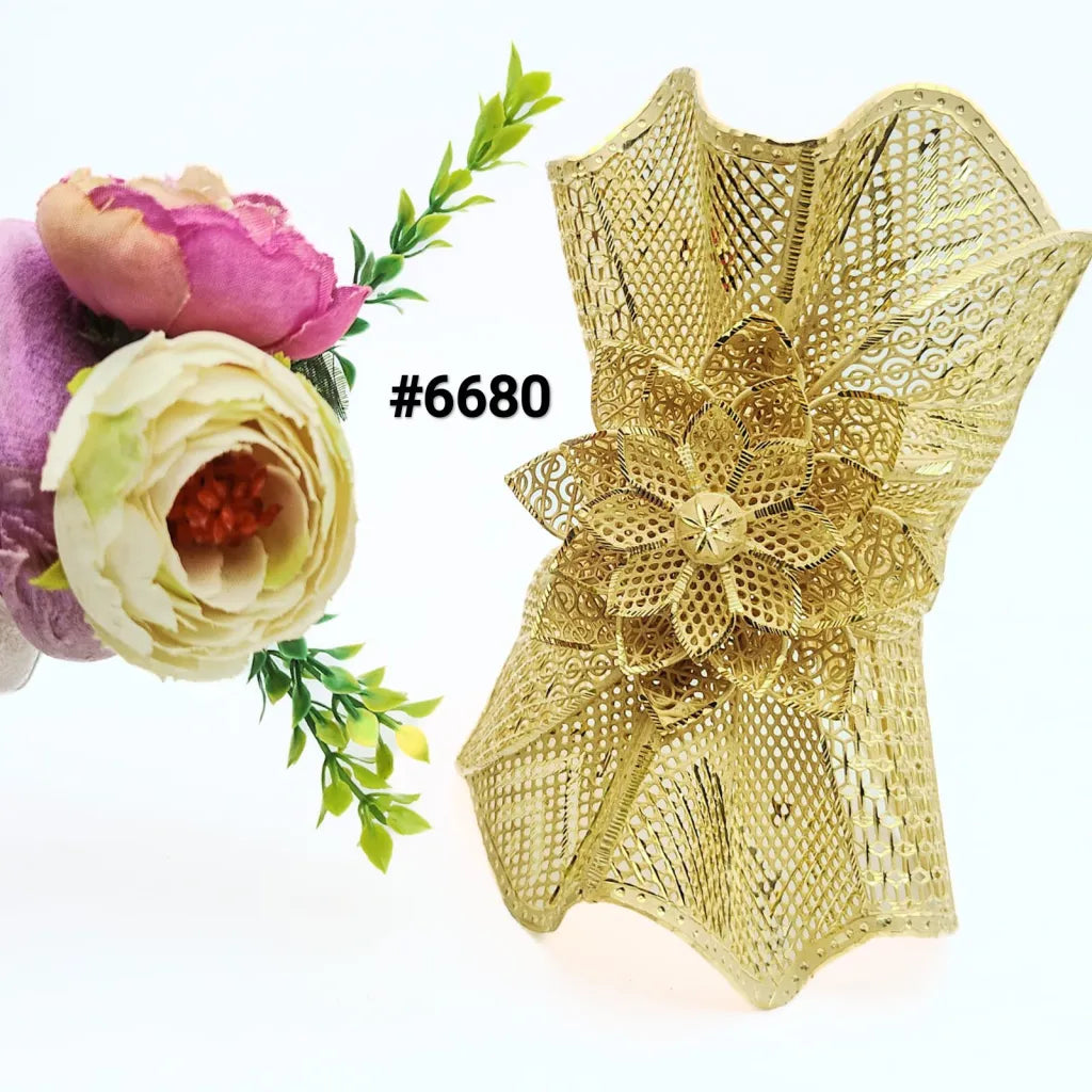 Gold Plated Adjustable Broad Bracelet Flower Design Style Jewelry Sale Model No: 6680