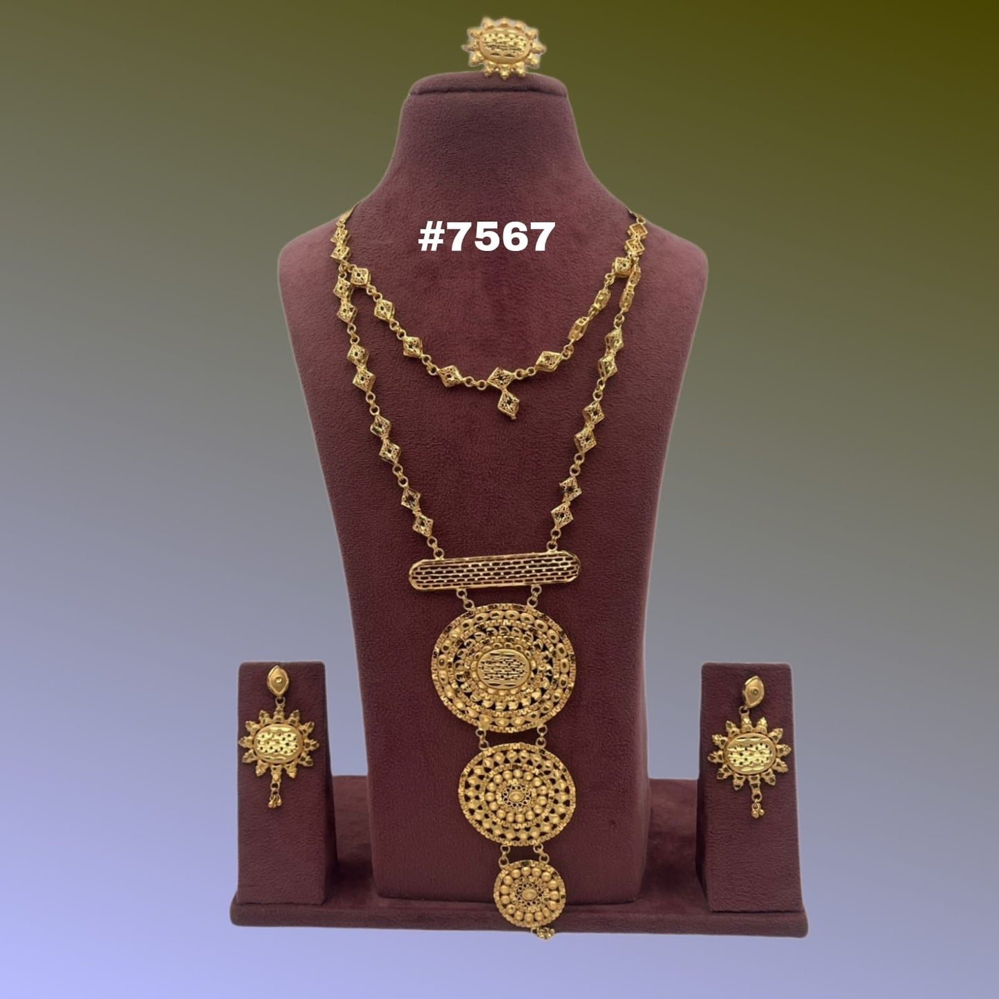 Gold Plated Hand Made Jewelry Long Necklace Set, PMJ Model No: 7567