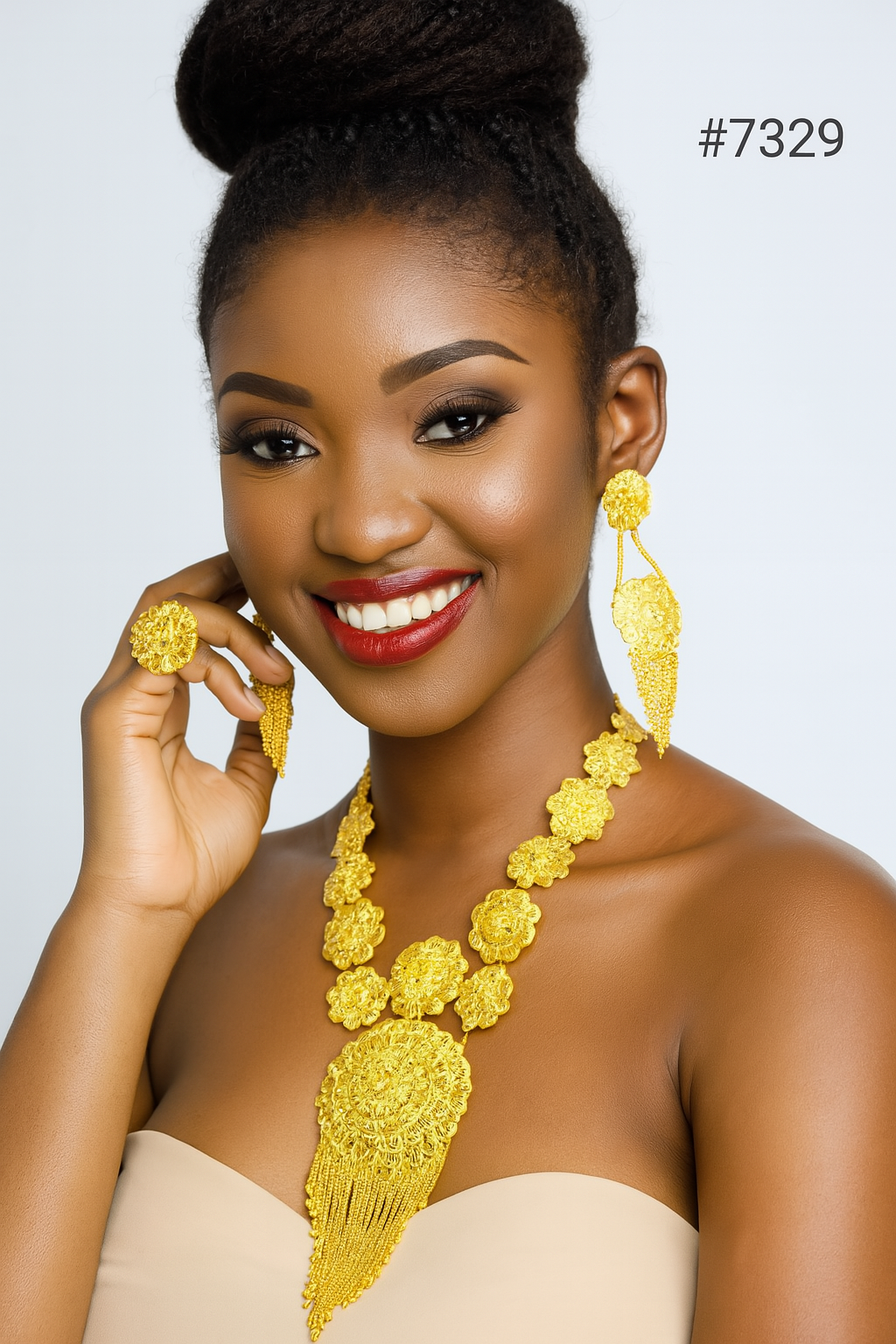 This African Bijoux gold-plated necklace, featuring a stunning Gambian design, is the perfect blend of elegance and cultural heritage. Elevate your style with this unique piece of African Bijoux jewelry.