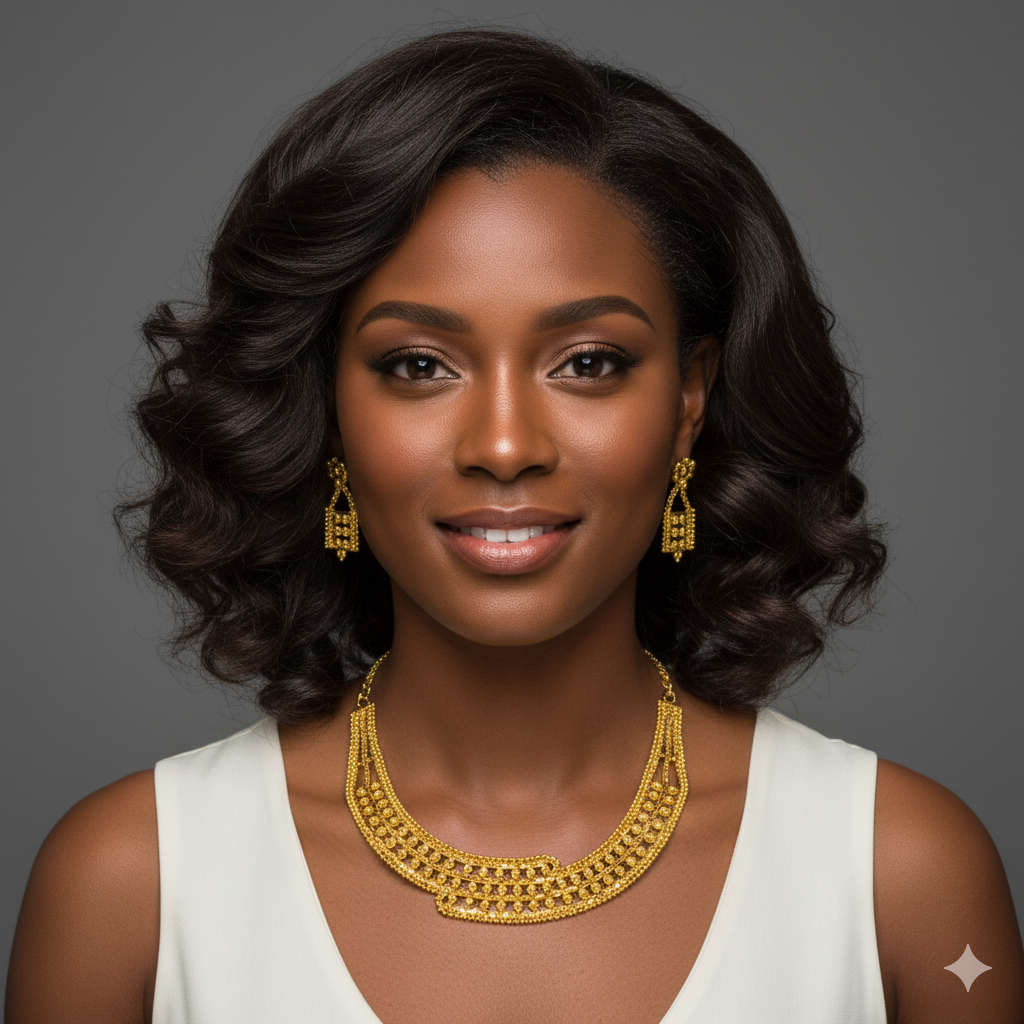 A stunning gold-plated necklace set featuring a three-layered arc design with intricate circular motifs for a radiant look. The adjustable chain ensures a perfect fit, while the matching geometric drop earrings beautifully complement the design. Lightweight and elegant, this set is ideal for weddings, festive occasions, and cultural celebrations.