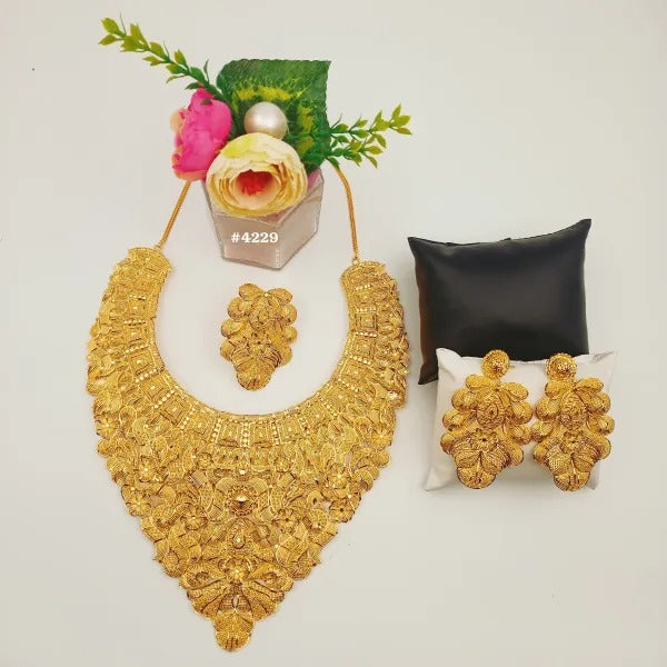 Embrace the elegance of African Bijoux jewelry with this stunning gold-plated necklace, featuring unique Gambian design elements.