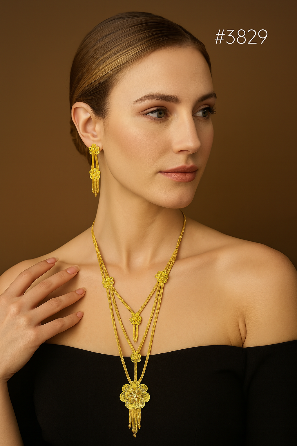 Exclusive Gold Plated Long Necklaces Set, PMJ Model No: 3829