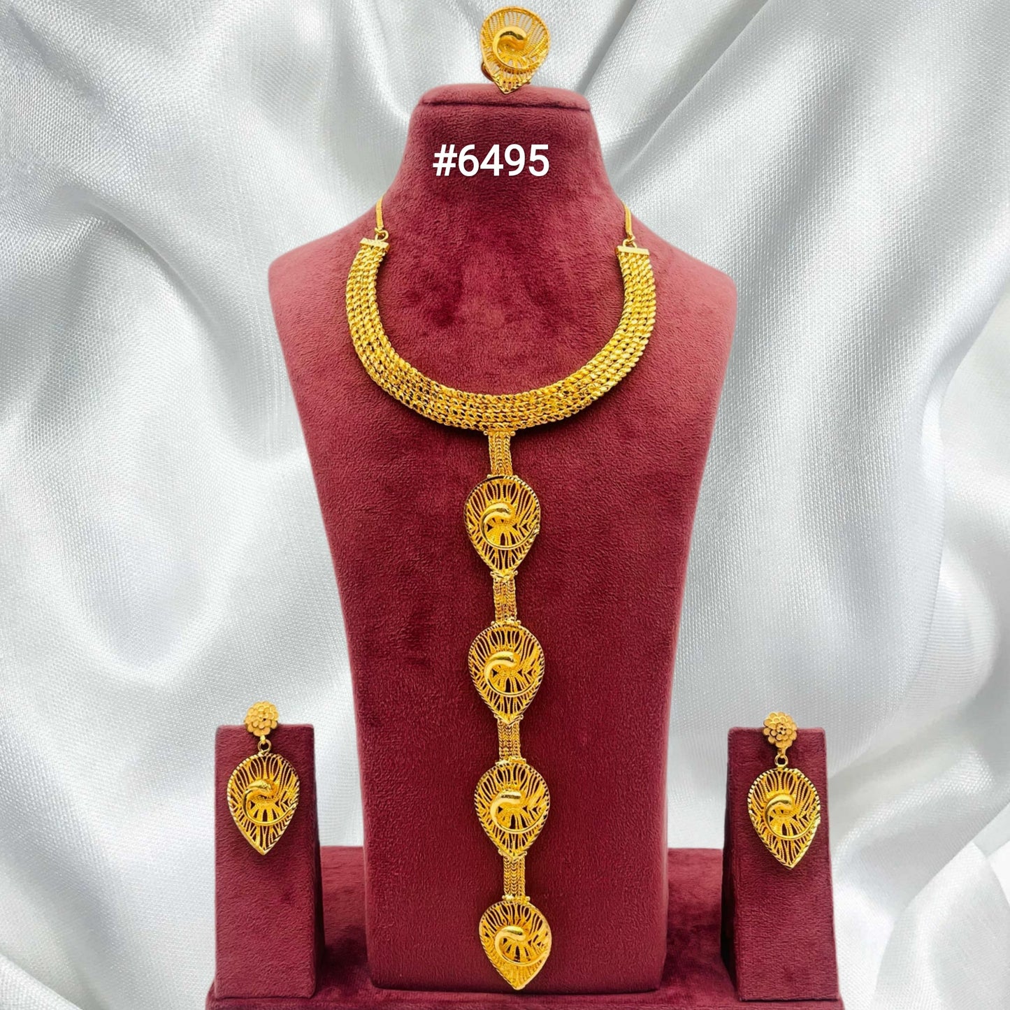 Designer Gold Plated Long Necklace Set, PMJ Model No: 6495
