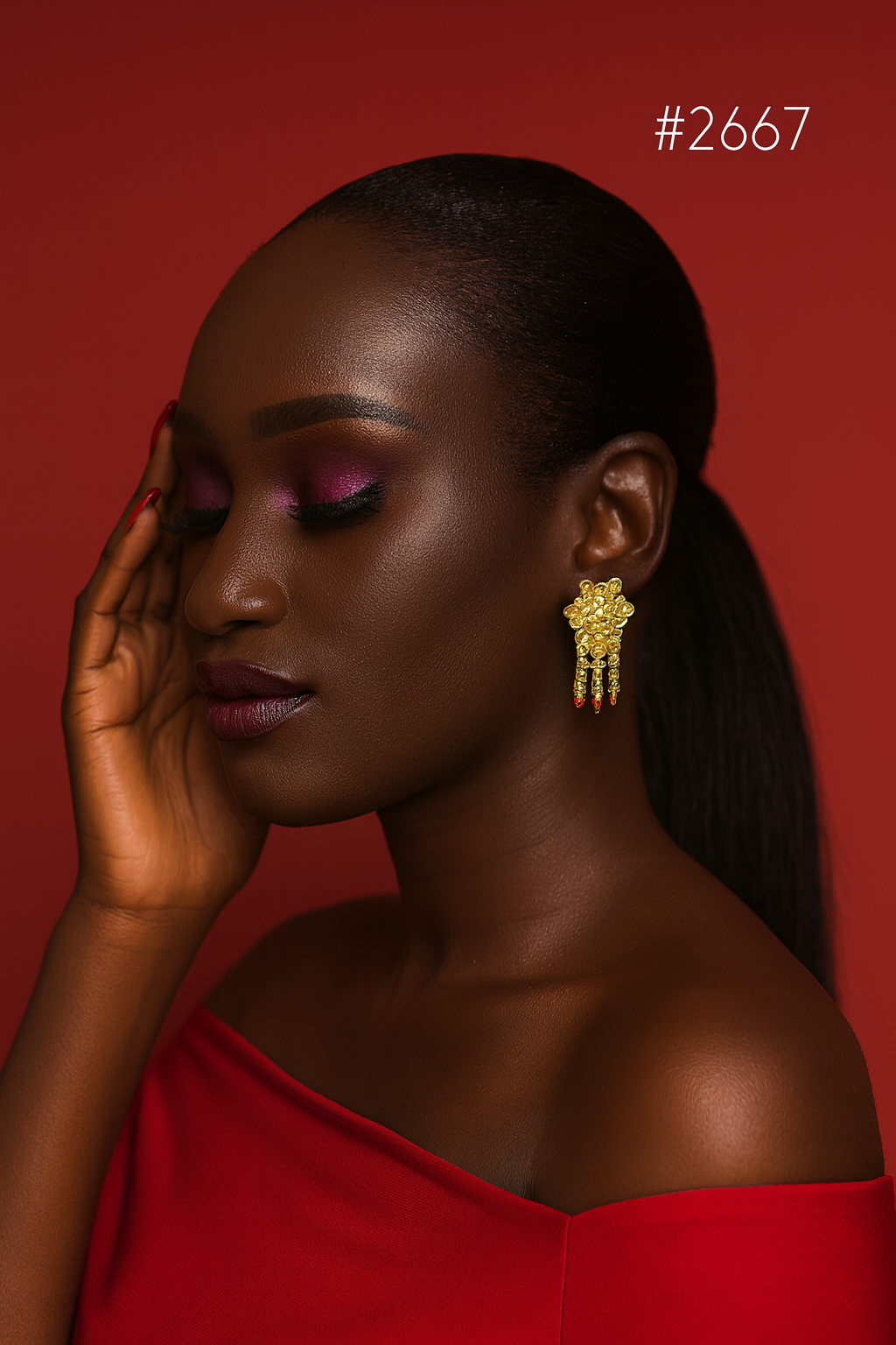 Short, stylish & elegant gold covering earrings are best for a minimalist look with your complete party outfit.